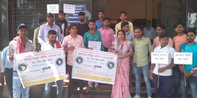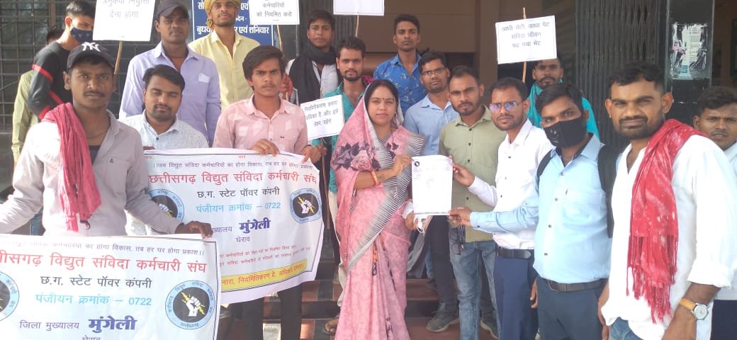 मुंगेली// दो सूत्रीय मांगों को लेकर कल 29 अप्रैल को शहर में संविदा विद्युत कर्मियों ने रैली निकाली। जिसके समर्थन में जिपं सदस्य दुर्गा उमाशंकर साहू ने  जिला कलेक्टरों के प्रांगण में संविदा विद्युत कर्मियों के समर्थन दिया।रैली शहर के विभिन्न चौक चौराहों से होते हुए कलेक्ट्रेट कार्यालय पहुंची। यहां सरकार से अपनी मांग को लेकर कर्मियों ने नारेबाजी की। साथ ही भाजपा युवा मोर्चा के कार्यकर्ताओं ने भी सरकार विरोधी नारे लगाए।फिर संविदा कर्मियों ने मुख्यमंत्री के नाम लिखित ज्ञापन कलेक्टर को सौंपा। ध्यान देने योग्य बात यह है की सीएसईबी के संविदा कर्मचारियों ने प्रदेश सरकार के खिलाफ आंदोलन छेड़ दिया है।विद्युत विभाग के संविदा कर्मियों ने 2 सूत्रीय मांगों को लेकर से अनिश्चितकालीन आंदोलन की शुरुआत की है। उनकी मांगों में पहली मांग यह है कि पावर कंपनी में कार्यरत समस्त विद्युत संविदा कर्मचारियों को जिनकी संख्या 2500 है उन्हे विभाग में रिक्त लाइन परिचालक के 3200 पदों में नियमितीकरण कर पद को भरा जाए। वही दूसरी मांग है कि पावर कंपनी में सेवा कार्य के दौरान समस्त मृत हुए 25 विद्युत संविदा कर्मचारियों के परिजनों में से किसी के एक सदस्य को तत्काल अनुकंपा नियुक्ति और उचित मुआवजा दिया जाए।समर्थन में आए जिपं सदस्य दुर्गा उमाशंकर साहू सहित भाजपा युवा मोर्चा के सदस्यों ने सरकार को असंवेदनशील बताते हुए कहा कि सरकार के प्रति जनता का आक्रोश चरम पर है। लोग हताश हो चुके हैं। ऐसे में बिना देरी किए सरकार को संविदा विद्युत कर्मियों की मांग पूरी करनी चाहिए। यदि सरकार ऐसा नहीं करती है आने वाले दिनों में भाजपा युवा मोर्चा संविधा कर्मियों के समर्थन में उग्र आंदोलन करेगा।
