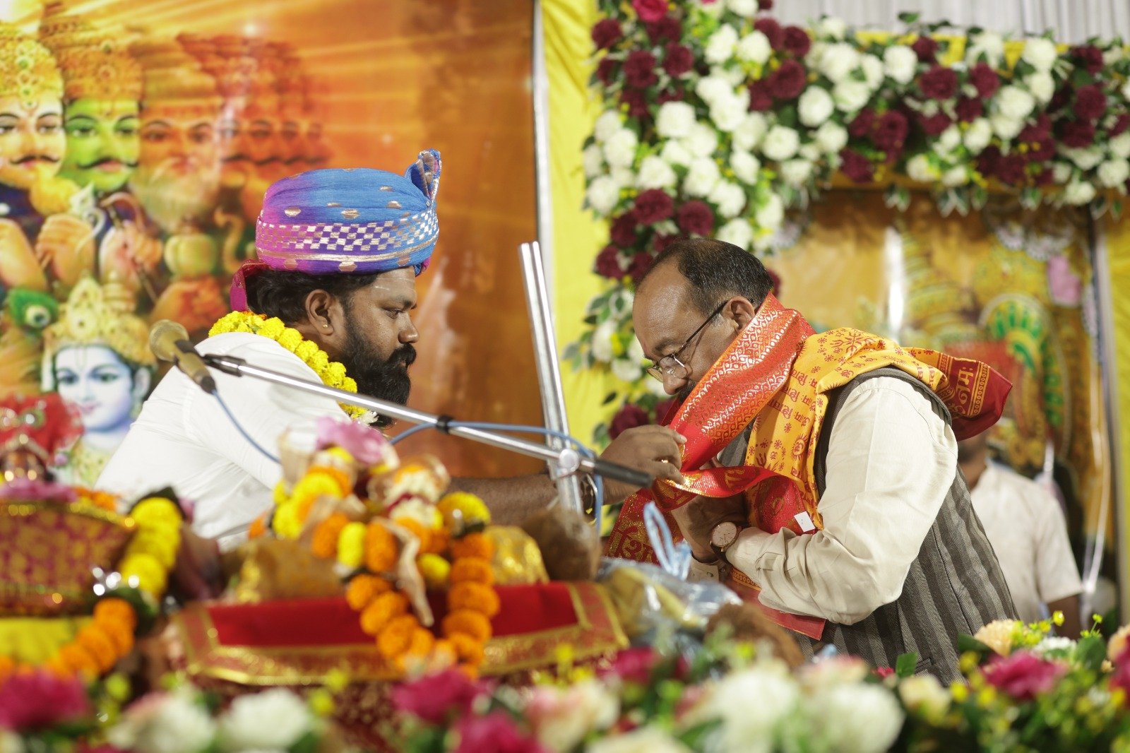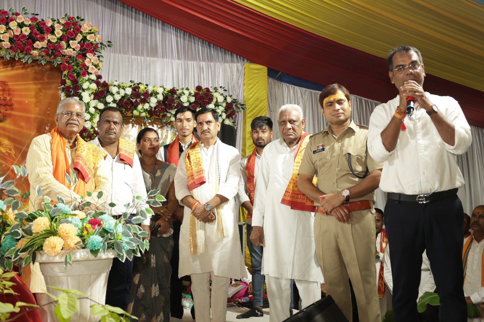 मुंगेली.. जिला पुलिस परिवार द्वारा आयोजित श्रीमद् भागवत ज्ञान यज्ञ कथा में छत्तीसगढ़ के उप मुख्यमंत्री अरुण साव केंद्रीय राज्य मंत्री तोखन साहू , वरिष्ठ विधायक मुंगेली पन्नूलाल मोहले, एवं पूर्व विधानसभा अध्यक्ष धरमलाल कौशिक जी, मुंगेली पुलिस अधीक्षक भोजराम पटेल सम्मिलित होकर शहीद एवं स्व.पुलिस जवानों को श्रद्वाजंली अर्पित कर श्रीमद् भागवत कथा श्रवण किये।व्यास पीठ में विराजमान महराज उमाकांत मिश्र एवं सूरज मिश्र के द्वारा चौथे दिन कृष्ण लीला एवं गोवर्धन पुजा का कथावाचन सुनकर श्रद्धालु हुये भावविभोर ,मुंगेली जिला पुलिस परिवार द्वारा आयोजित श्रीमद् भागवत ज्ञान यज्ञ कथा में छत्तीसगढ़ के उप मुख्यमंत्री अरुण साव केंद्रीय राज्य मंत्री तोखन साहू, वरिष्ठ विधायक मुंगेली पन्नूलाल मोहले एवं पूर्व विधानसभा अध्यक्ष धरमलाल कौशिक एवं मुंगेली पुलिस अधीक्षक भोजराम पटेल उपस्थिति होकर अपने प्राणों का सर्वोच्च बलिदान कर देश एवं समाज की सुरक्षा मे बहुमुल्य योगदान दिये ऐसे सभी शहीद एवं स्वर्गीय पुलिस जवान को श्रद्धाजंलि अर्पित किये और शहीद एवं स्वर्गीय पुलिस जवानों के परिवारों का मनोबल बढ़ाये तथा श्रीमद् भागवत ज्ञान यज्ञ कथा सुनकर आनंदित हुए और भजन में सभी वरिष्ठजन, पुलिस अधिकारी/कर्मचारी एवं पुलिस परिवार सम्मिलित हुए।