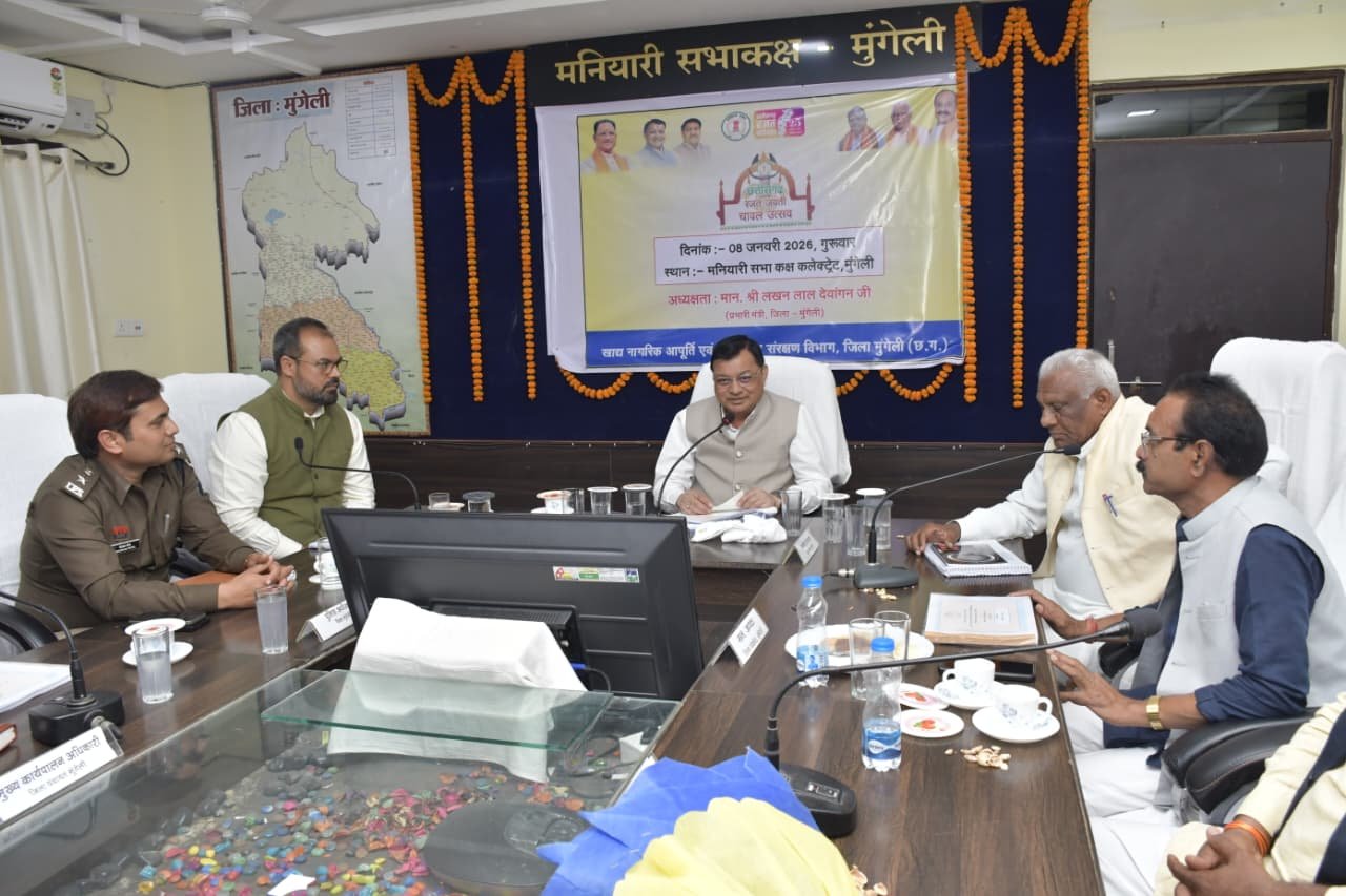 मुंगेली, // राज्य के वाणिज्य एवं उद्योग, श्रम मंत्री तथा जिले के प्रभारी मंत्री लखन लाल देवांगन ने जिला कलेक्टोरेट स्थित मनियारी सभाकक्ष में विभिन्न विभागों की समीक्षा बैठक लेकर शासन की योजनाओं की प्रगति, जनसेवाओं की गुणवत्ता एवं मैदानी क्रियान्वयन की स्थिति की गहन समीक्षा की। उन्होंने अधिकारियों को निर्देशित किया कि आमजन से जुड़े प्रकरणों का त्वरित, पारदर्शी और समय-सीमा में निराकरण सुनिश्चित किया जाए, जिससे जनता में शासन-प्रशासन की सकारात्मक छवि बने। उन्होंने कहा कि शासन की योजनाओं का आमजनों को त्वरित एवं समयबद्ध लाभ पहुंचाने की बात कही। बैठक में मुंगेली विधायक पुन्नूलाल मोहले, जिला पंचायत अध्यक्ष श्रीकांत पाण्डेय, जिलाध्यक्ष दीनानाथ केशरवानी, कलेक्टर कुन्दन कुमार, पुलिस अधीक्षक भोजराम पटेल, वन मंडलाधिकारी अभिनव कुमार, जिला पंचायत सीईओ प्रभाकर पाण्डेय, एडीएम निष्ठा पाण्डेय तिवारी, अपर कलेक्टर जी.एल.यादव सहित तीनों अनुविभागों के एसडीएम और सभी विभागों के अधिकारी मौजूद रहे।
