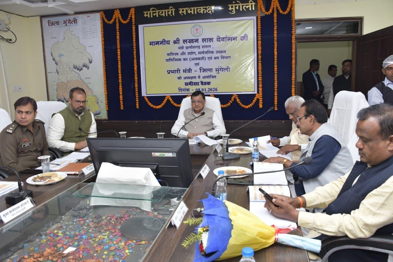 मुंगेली, // राज्य के वाणिज्य एवं उद्योग, श्रम मंत्री तथा जिले के प्रभारी मंत्री लखन लाल देवांगन ने जिला कलेक्टोरेट स्थित मनियारी सभाकक्ष में विभिन्न विभागों की समीक्षा बैठक लेकर शासन की योजनाओं की प्रगति, जनसेवाओं की गुणवत्ता एवं मैदानी क्रियान्वयन की स्थिति की गहन समीक्षा की। उन्होंने अधिकारियों को निर्देशित किया कि आमजन से जुड़े प्रकरणों का त्वरित, पारदर्शी और समय-सीमा में निराकरण सुनिश्चित किया जाए, जिससे जनता में शासन-प्रशासन की सकारात्मक छवि बने। उन्होंने कहा कि शासन की योजनाओं का आमजनों को त्वरित एवं समयबद्ध लाभ पहुंचाने की बात कही। बैठक में मुंगेली विधायक पुन्नूलाल मोहले, जिला पंचायत अध्यक्ष श्रीकांत पाण्डेय, जिलाध्यक्ष दीनानाथ केशरवानी, कलेक्टर कुन्दन कुमार, पुलिस अधीक्षक भोजराम पटेल, वन मंडलाधिकारी अभिनव कुमार, जिला पंचायत सीईओ प्रभाकर पाण्डेय, एडीएम निष्ठा पाण्डेय तिवारी, अपर कलेक्टर जी.एल.यादव सहित तीनों अनुविभागों के एसडीएम और सभी विभागों के अधिकारी मौजूद रहे।