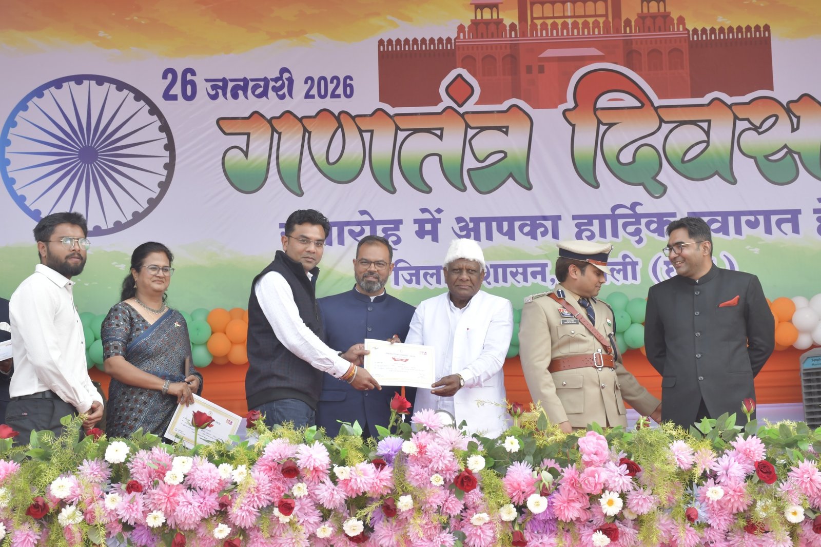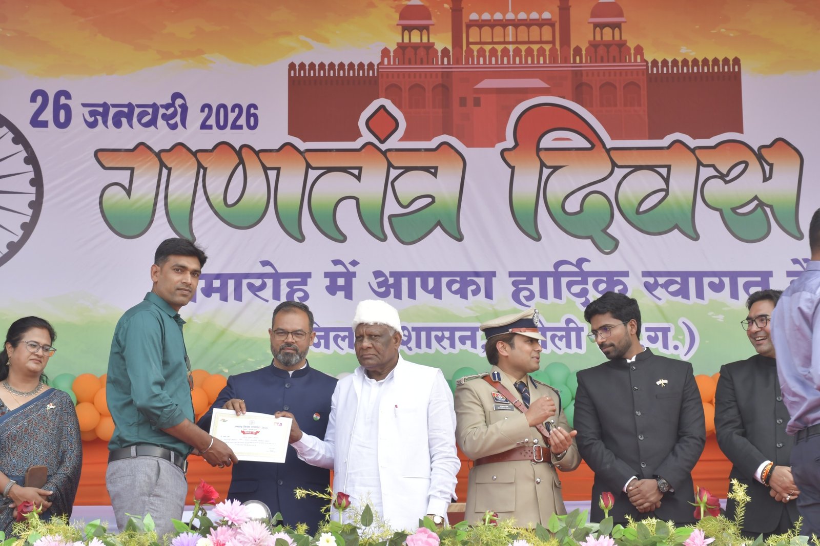 मुख्य अतिथि श्री मोहले ने 26 जनवरी गणतंत्र दिवस के अवसर पर शासन की योजनाओं एवं कार्यक्रमों में बेहतर कार्य करने वाले अधिकारी-कर्मचारियों को सम्मानित किया। उन्होंने विभिन्न विभागों के अधिकारी-कर्मचारियों को उत्कृष्ट कार्य के लिए प्रशस्ति पत्र देकर सम्मानित किया और उनका उत्साहवर्धन किया। व्याख्याता श्री अशोक सोनी और शिक्षक श्री रामपाल सिंह ने मंच का संचालन किया।